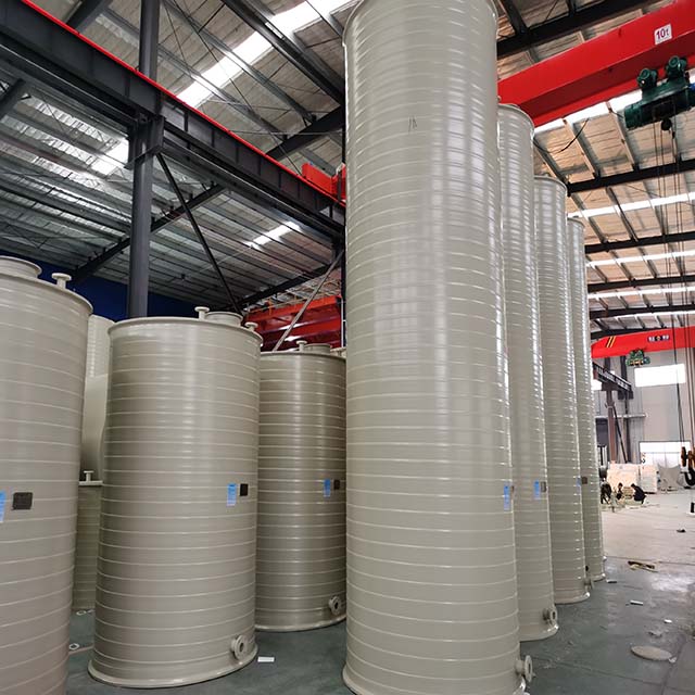 2、外部焊接制作:外部焊接就是用进口自动挤出焊接机组使储罐应力最大部位实现大焊缝一次焊接成型的工艺。将与罐体性质相同的全新PPH颗粒料热熔在大焊缝处,与罐底、罐体成一体。
